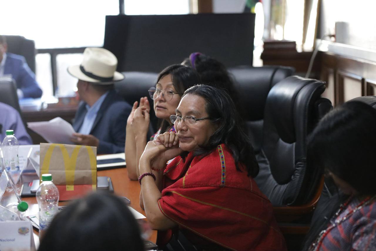 Posteriormente, la Secretaria Presidencial de la Mujer participó en la toma de posición del Consejo Directivo Nacional del Fondo de Desarrollo Indígena Guatemalteco (FODIGUA), realizada en la sede de FODIGUA, espacio que fortalece la articulación interinstitucional en la promoción del desarrollo humano de los Pueblos Indígenas del país y reafirma el compromiso de la SEPREM con la promoción de políticas y acciones orientadas al desarrollo integral y al pleno ejercicio de los derechos de las mujeres de los Pueblos Indígenas en Guatemala.