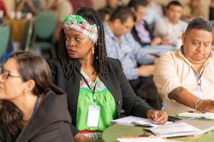 En su intervención, presentó los lineamientos estratégicos institucionales en materia de igualdad de género y derechos humanos de las mujeres mayas, garífunas/afrodescendientes, xinkas y mestizas/ladinas en Guatemala, reafirmando el compromiso de SEPREM en promover la inclusión y la construcción de una sociedad más justa y equitativa.